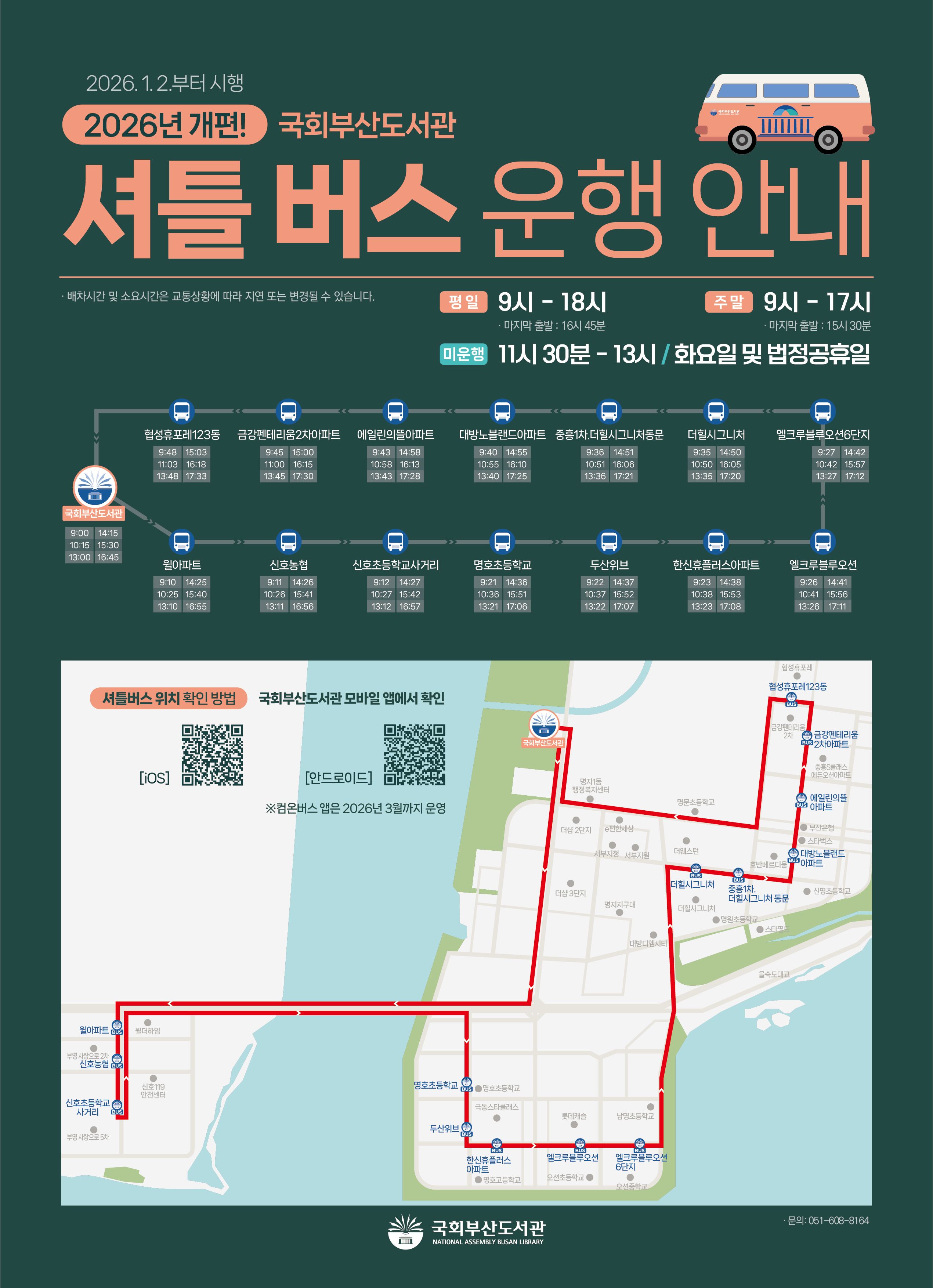 2026년 국회부산도서관 셔틀버스 노선 및 운행시간 변경 안내