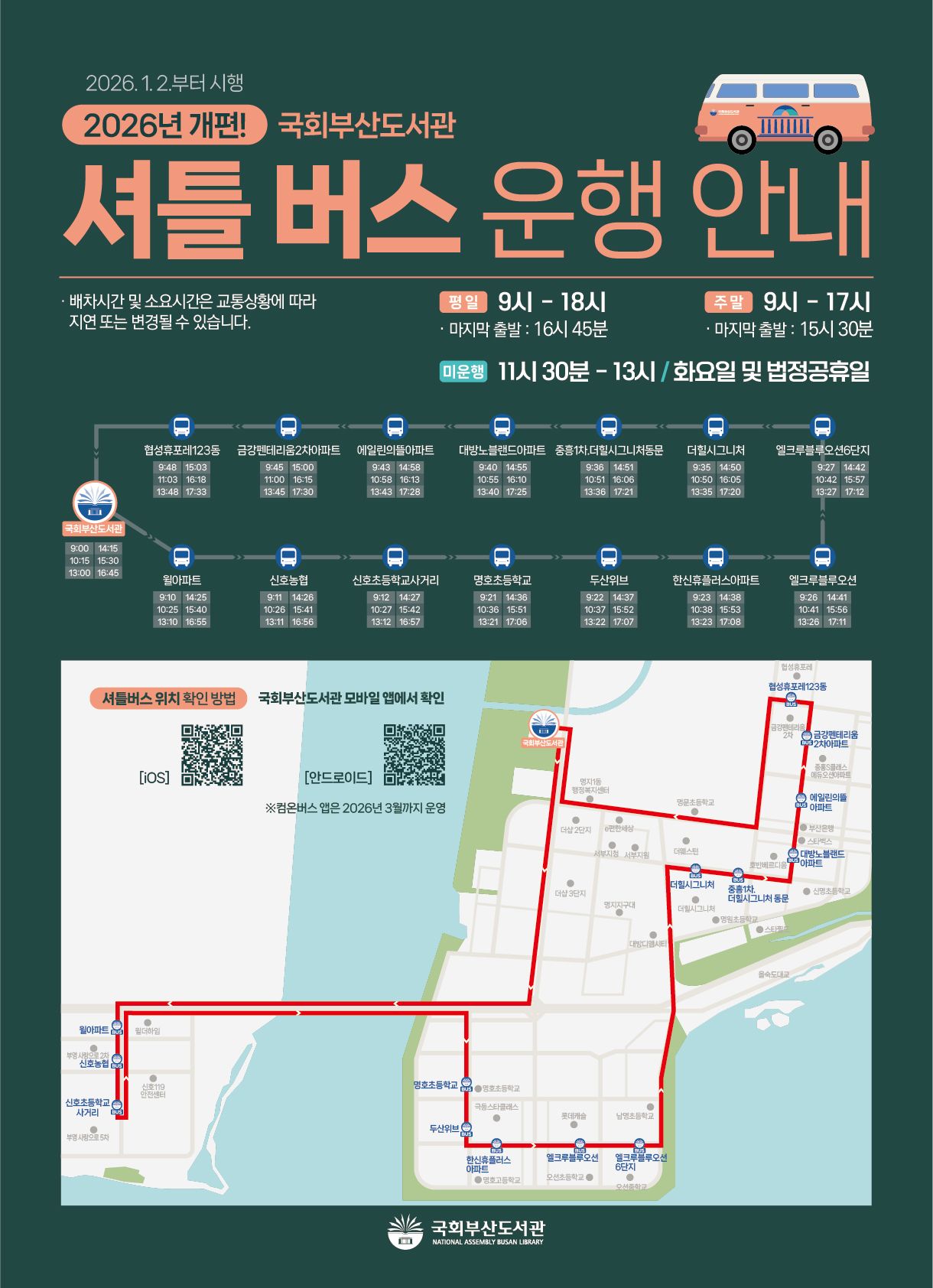 2026년 국회부산도서관 셔틀버스 노선 및 운행시간 변경 안내
